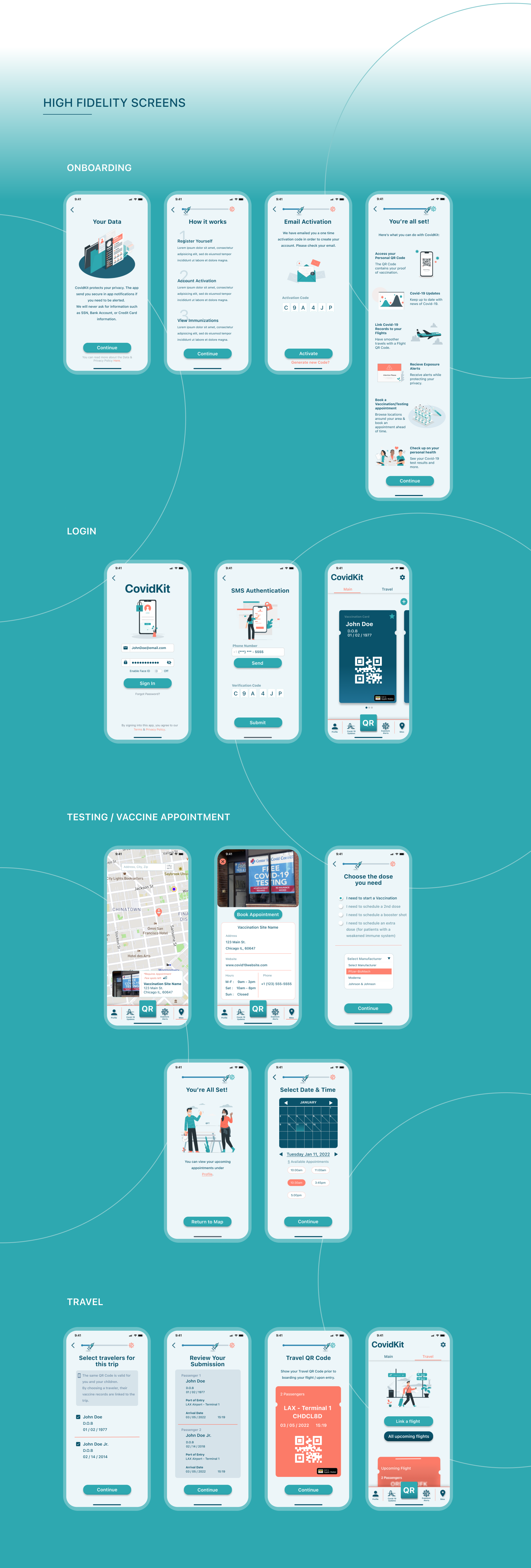 The CovidKit app was designed to store a digital version of the user's vaccination records via a Vaccine QR code. It also allows the user to book a Vaccine and/or Testing appointment, provides Covid-19 updates and exposure alerts, via Bluetooth technology, and offers support for users that wish to travel. Stay Safe!